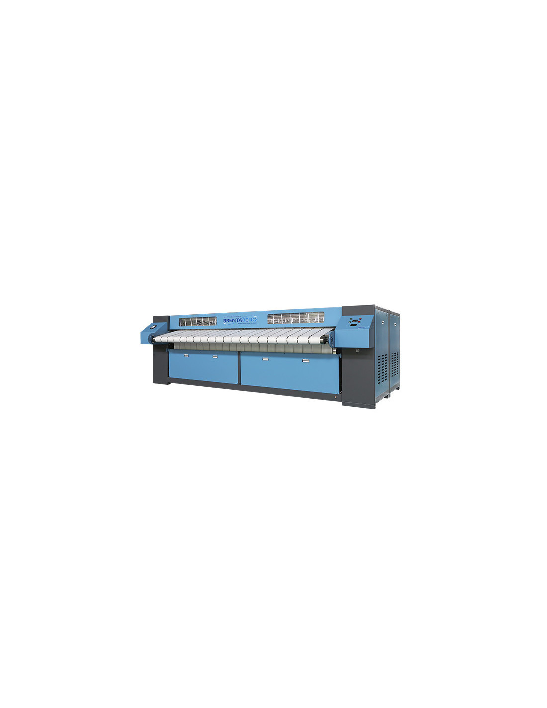 The calender is characterized by the presence of a roller with a diameter of 800mm, heated internally, which evaporates moisture and simultaneously irons flat linen pressed onto the roller by the ironing bands (belts).