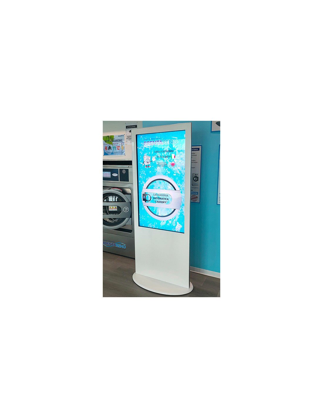From now on, an innovative and constantly updated Totem can be installed in our laundries, also with the possibility of inserting advertising.